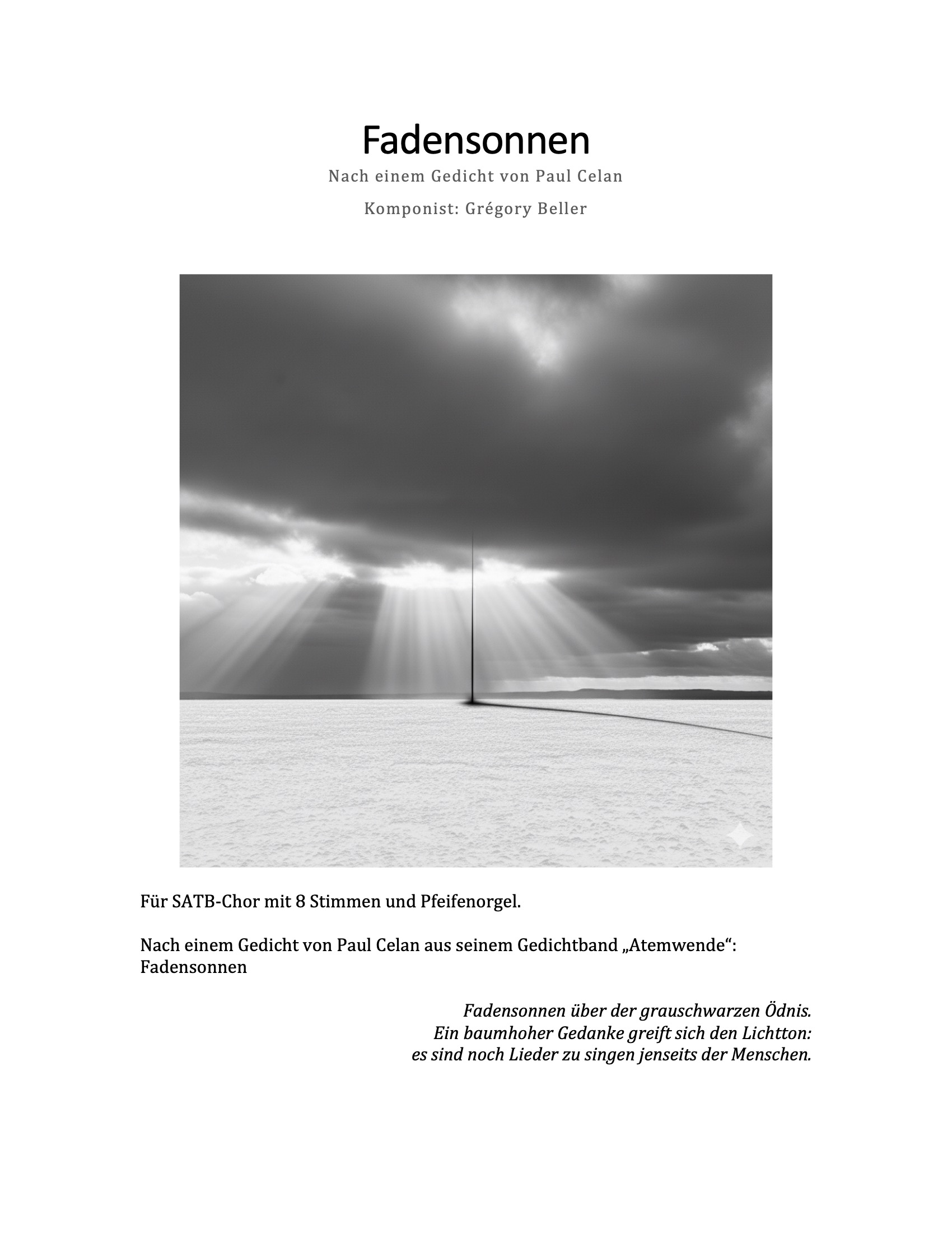 The composition is based on Paul Celan’s poem Fadensonnen (Thread Suns). Beller’s work combines the voices of the choir with organ sounds and addresses the fragile balance between finitude and hope in a vivid and cryptic way.